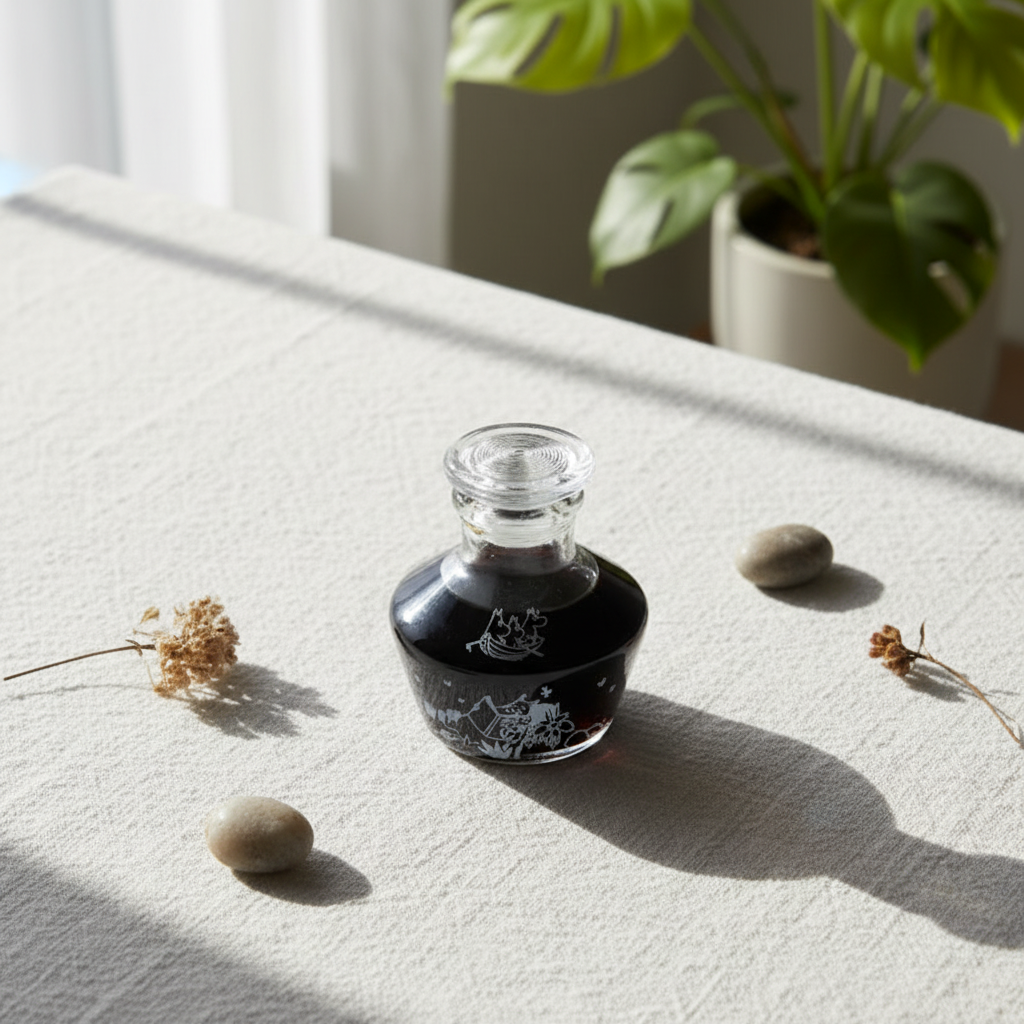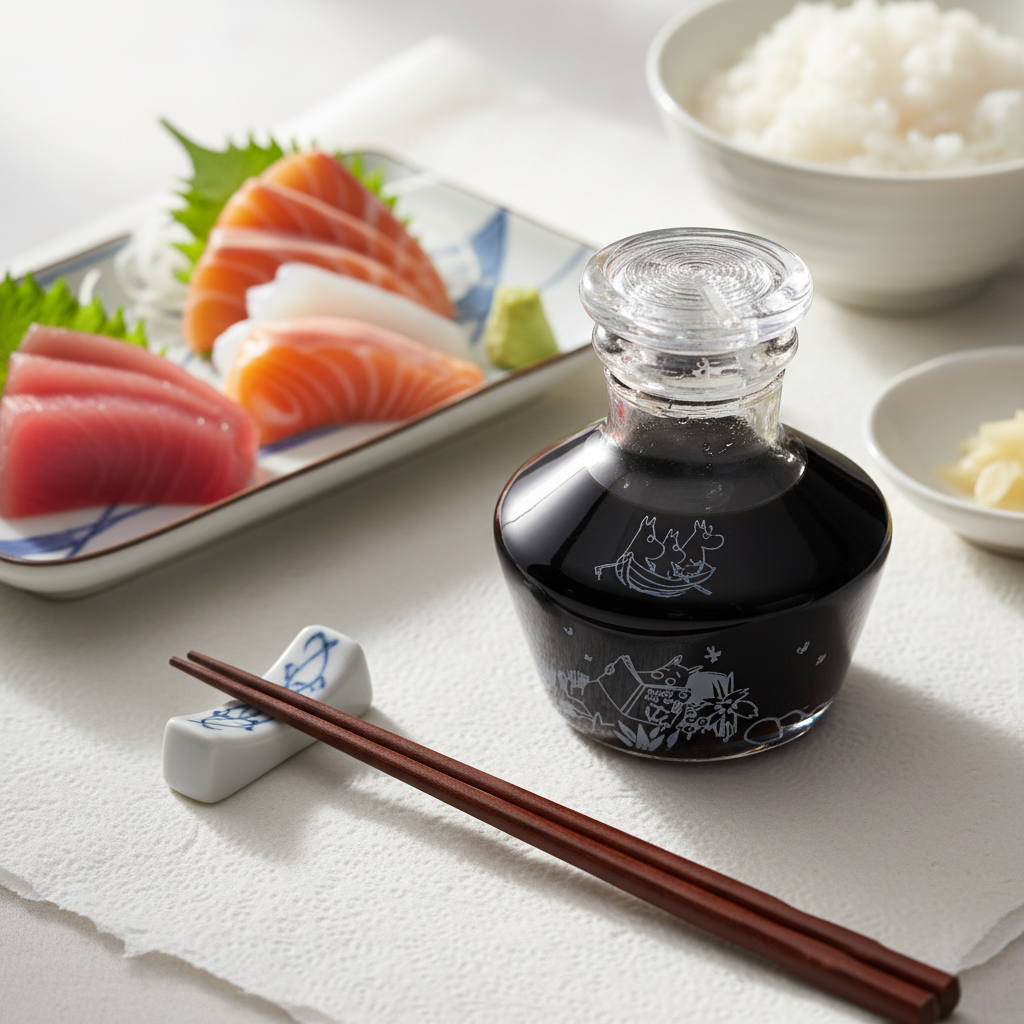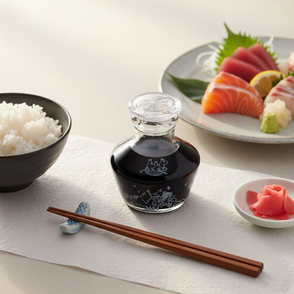 透明なガラスの中に醤油を注いだ瞬間、白で描かれたムーミンたちのシルエットがふわりと浮かび上がります。これは単なる醤油差しではありません。毎日の食事を、少しだけ特別な時間に変えてくれる、江戸の伝統と北欧の物語が出会った、唯一無二の一品です。