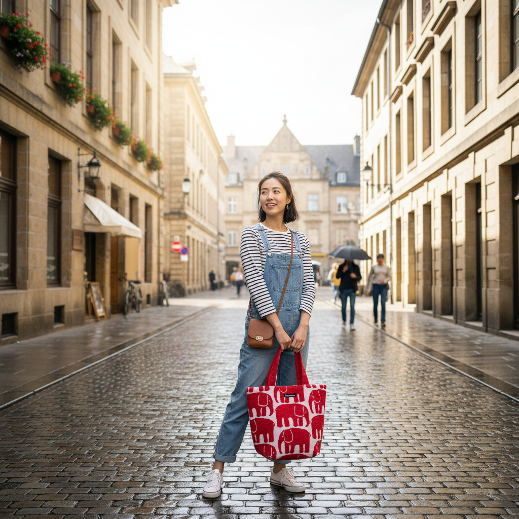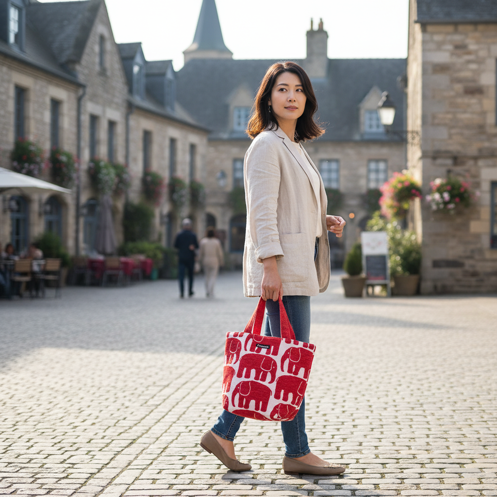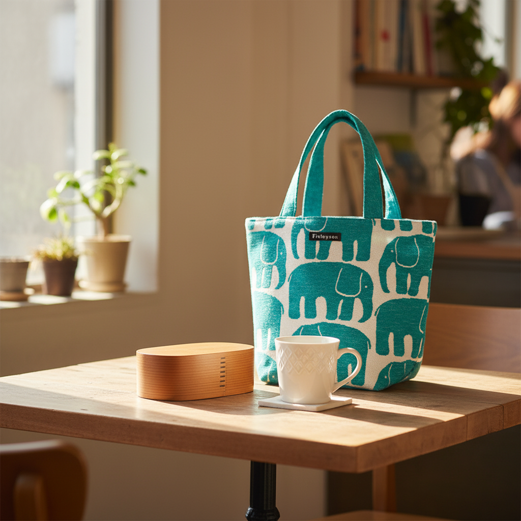 朝、お弁当を詰めてこのバッグに入れる。 通勤途中、手に持つだけでその日のコーデがぐっと引き締まる。 ランチタイム、テーブルに置いたバッグが目に入るたびに「今日も好きなもので過ごせている」と感じる——